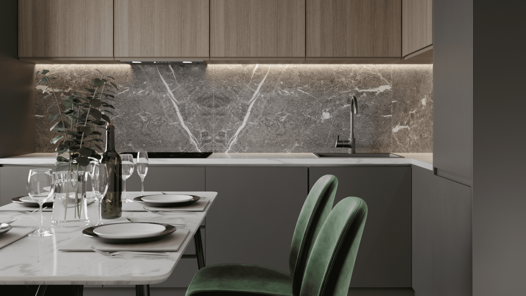 Двухкомнатная квартира для молодой семьи площадью 50 м². Важно было выделить отдельную спальню под детскую и сохранить мастер-спальню, при этом отделив приватную зону от общественной.